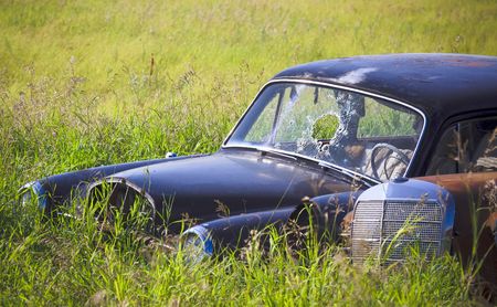 OLD CAR - A wreck of a vehicle on a scrap yard