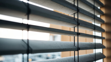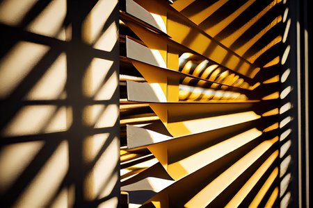 close-up of window louver, with sunlight filtering through, created with generative ai