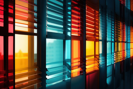 close-up of window louver, with the sun shining through, created with generative ai