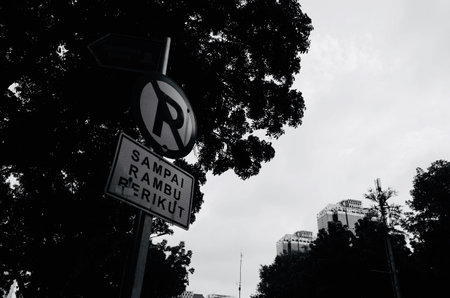 Black and white street sign in the city of Kuala Lumpur, Malaysia