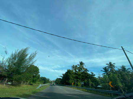 Peaceful scenery view on the road from Tembila to Kampung Raja via beach road
