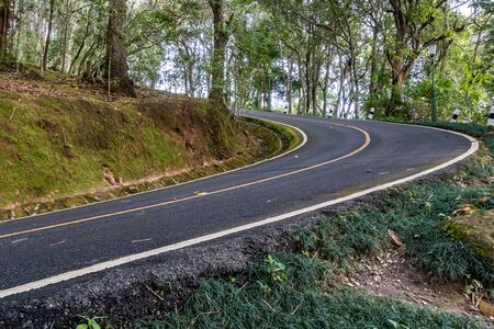Natural scenery in the countryside in the highlands with cool air, clear and sunny skies with quiet road conditions, with green plants providing fresh air
