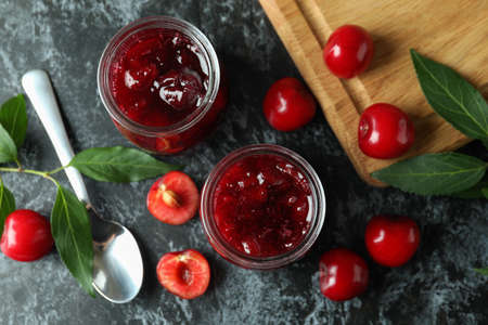 Close Up View Of Jars With Sweet Tasty Yummy Red Jam