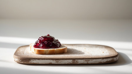 Freshly baked bread and berry preserves spread generated by artificial intelligence