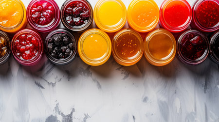 Colorful Assortment of Fruit Jam Jars. Generative AI