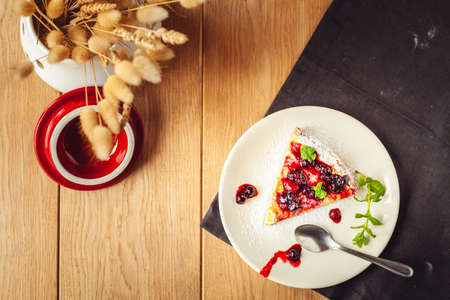 cheese cake pie with red fruits dessert