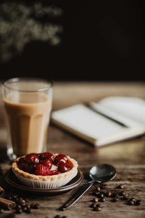 Egg tart on the wooden background.