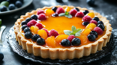 Lemon curd tart with fresh berries: close-up