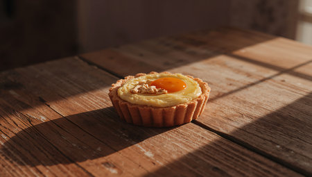 delicious egg tart on wood background