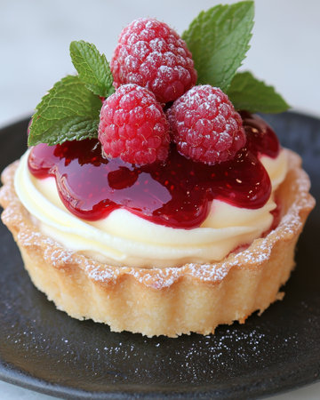 Home made tartlets with raspberries.