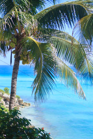 Palm trees in San Andres, Colombia in a beautiful beach background