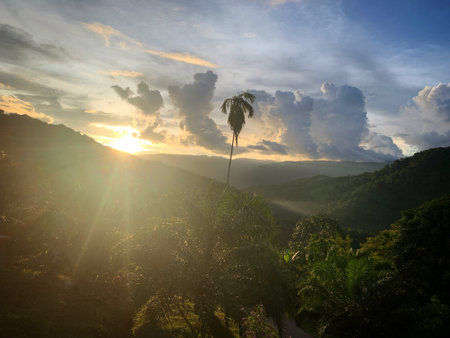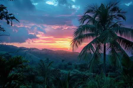 Radiant evening sky over tropical jungle