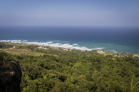 View of Bathsheba in Barbados with the Atlantic ocean in the distance and countryside in the foreground
