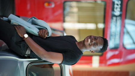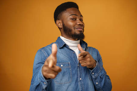 Portrait of young attractive stylish african american man model posing in casual clothes against neutral background looking sexy with afro hair. In People Youth Beauty and fashion concept.
