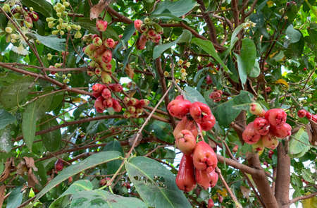 Water apples fruit on its tree, known as rose apples or watery rose apples.