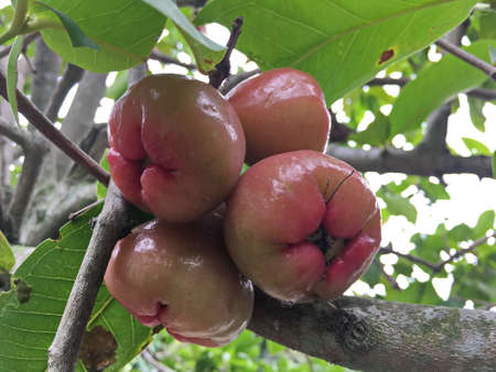 Rose apple fruit summer hanging on the tree / rose apples tree in orchard in Thailand