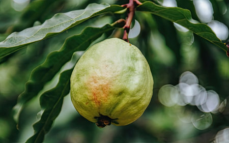 Guava fruit on tree. Guava is a fruit of the guava family.