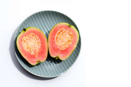 Freshly rose apple or Chomphu fruit on white background. The fruits are sweet and red or green.