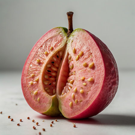 Guava, exotic fruits, flat lay overhead top view, AI generative