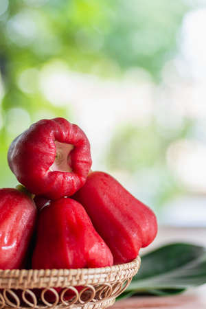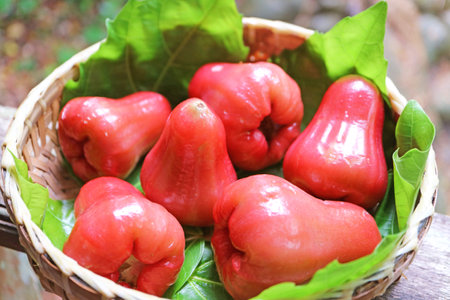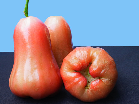 Rose apple or jambu on dark background under sunlight. Thailand apple tropical fruit flavors of sweet red gloss.