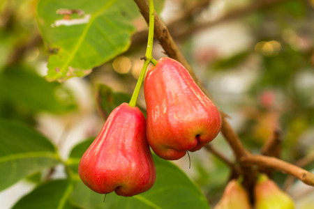 Rose apple fruit summer hanging on the tree / rose apples tree in orchard in Thailand