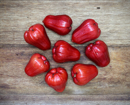 Local Indonesian fruits names Jambu Air or Red Water Guava ,placed on brown wooden background