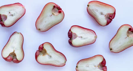 Rose apple or chomphu on white background under morning light from window.. Thailand apple fruit flavors of sweet red gloss.
