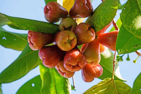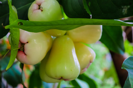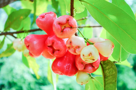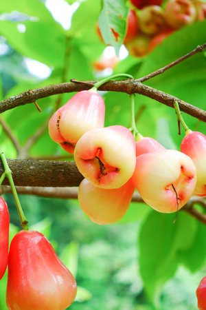 Rose Apple or Water Apples Fruits hanging on the tree with natural background