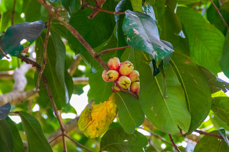 Water apples fruit on its tree, known as rose apples or watery rose apples.