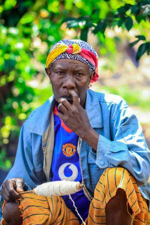 Konso, Ethiopia - November 30, 2020: African Konso Woman working hard in the Local Tribal Village