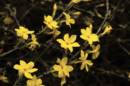 Yellow winter jasmine flower close up yellow winter jasmine yellow flower spring blossom floral macro botanical detail blossom branch garden bloom