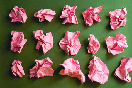 composition of crumpled paper in pink, yellow, blue and purple colors on a bright background.