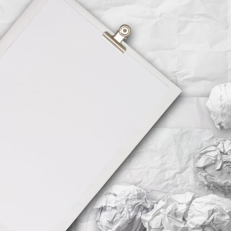 A close-up image of a crumpled white paper ball resting against a soft gray background. This photo symbolizes the creative process, representing discarded ideas and inspiration.