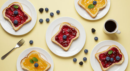 Freshly baked bread and berry preserves spread generated by artificial intelligence