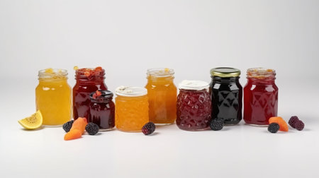 Colorful Assortment of Fruit Jam Jars. Generative AI
