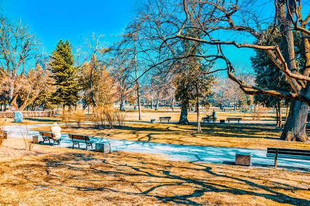 Amazing Winter Landscape of South Park in city of Sofia, Bulgaria