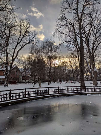 Sunset in the park in Bistrita, Romania in January 2022