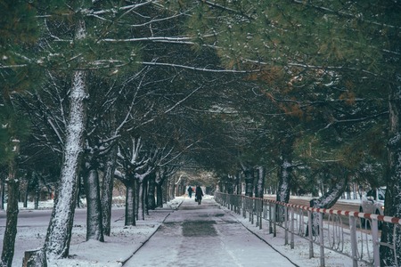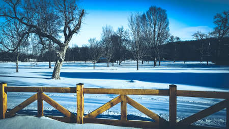 Park in a cold winter day and snow