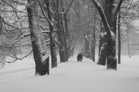 Walk in the snowstorm, January day in Catherine Park in Tsarskoye Selo