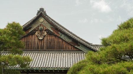 KYOTO, JAPAN - APRIL, 16, 2018: close view of ninomaru palace at nijo-jo castle in kyoto