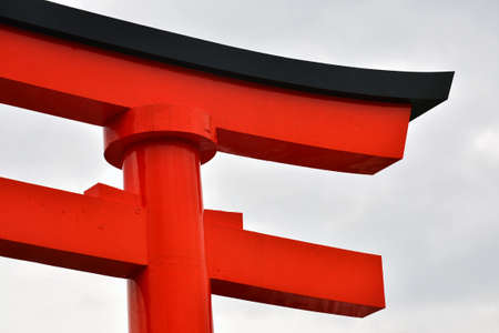 Hiroshima, Japan - January 09, 2020: Stone Japanese Torii in the Hiroshima City Center