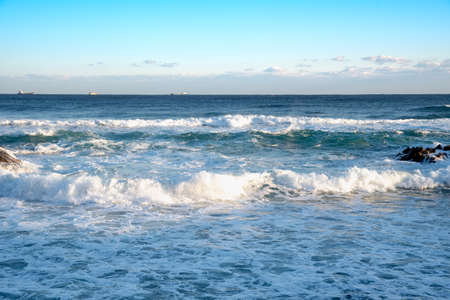 Blue sky and waves spread over Iwaya coast in winter (Fukuoka Prefecture)