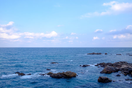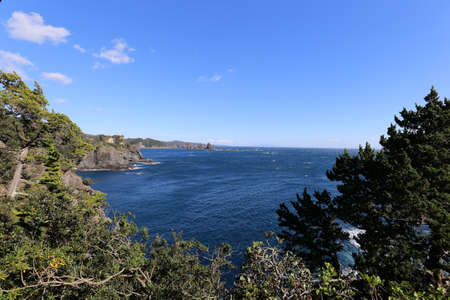 Beautiful blue sky and green and natural scenery of the sea in Kitanagato Coast Quasi-National Park