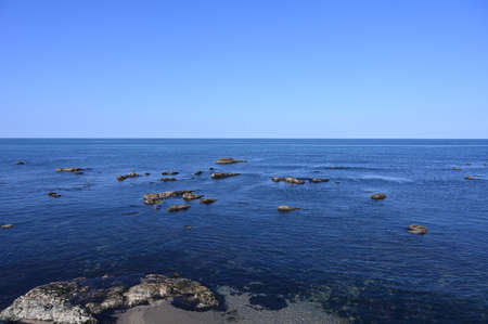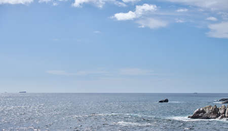 Vibrant beautiful coast of sea of Japan . Ocean horizon. Nautical background
