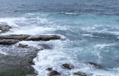 seascape, turquoise waters of the ocean beating on the coastal rocks