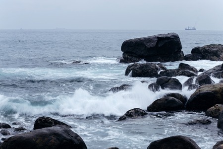Beautiful rocky coast of the eastern part of Sakhalin Island