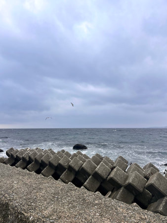concrete wave breaker at a coast in italy