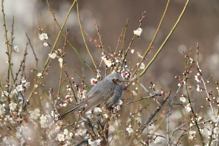 Brown eared Bulbul on plum tree