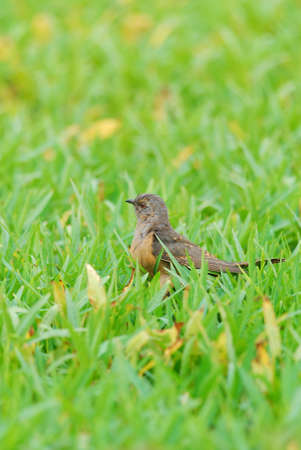 beautiful little bird on green grass meadow in the park.