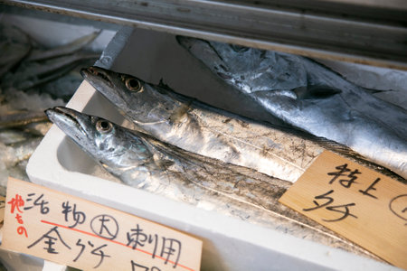 Fukuoka, Japan; 1st October 2023: Interior view of a restaurant and fish shop in Yanagawa.